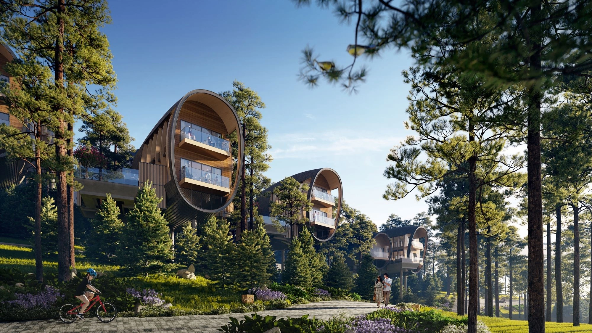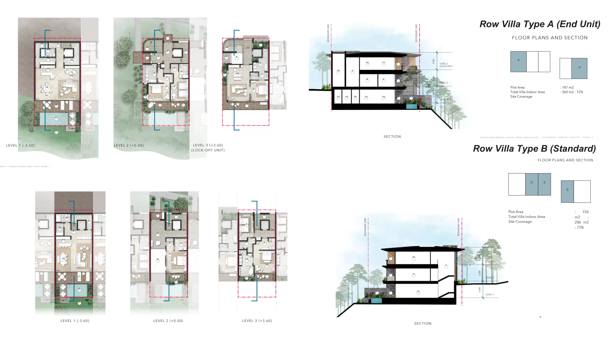 Với 48 căn biệt thự, chia thành 2 mẫu chính là ROW A Villas và ROW B Villas, diện tích đất từ 160m² – 252m², xây 3 tầng tại vị trí đồi cao lên tới 80 mét, 100% biệt thự sở hữu hồ bơi riêng, mở ra tầm nhìn giao hòa cùng thiên nhiên đa tầng của thung lũng.