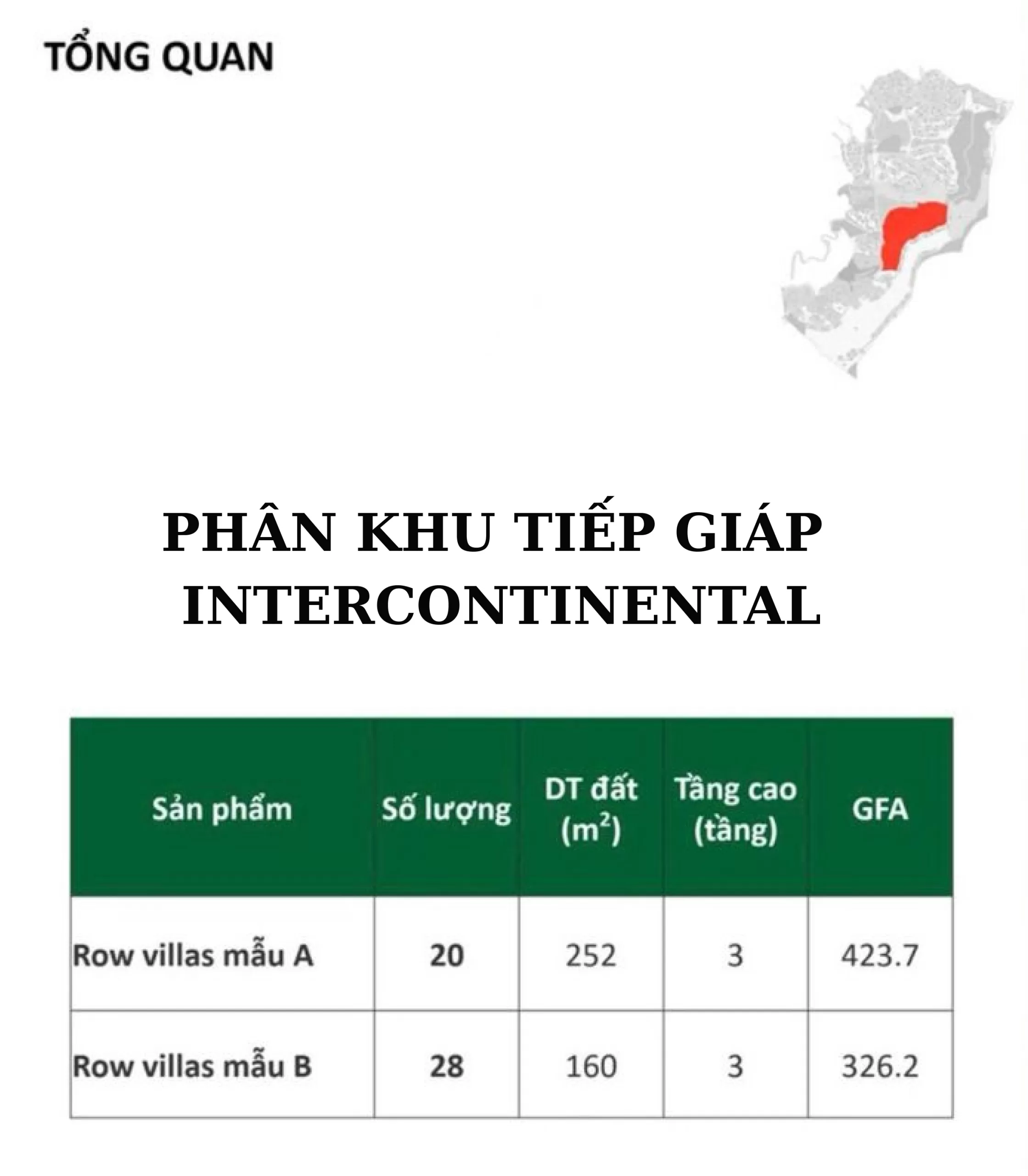– Row Villas mẫu A: 20 căn – DT đất: 252m2 – Tổng DTXD: 423,7m2